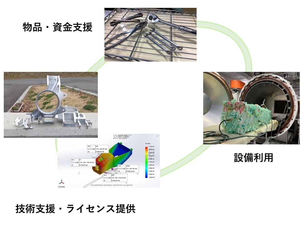 スポンサーシップの形として,部品支援,資金支援,設備使用,技術提供,ライセンス提供,協賛価格での支援など多岐にわたります。